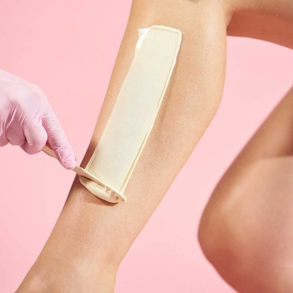 Krémový vosk s jemnou růžovou vůní — aplikuje se tenkou vrstvou, účinný i na krátké či oholené chloupky.